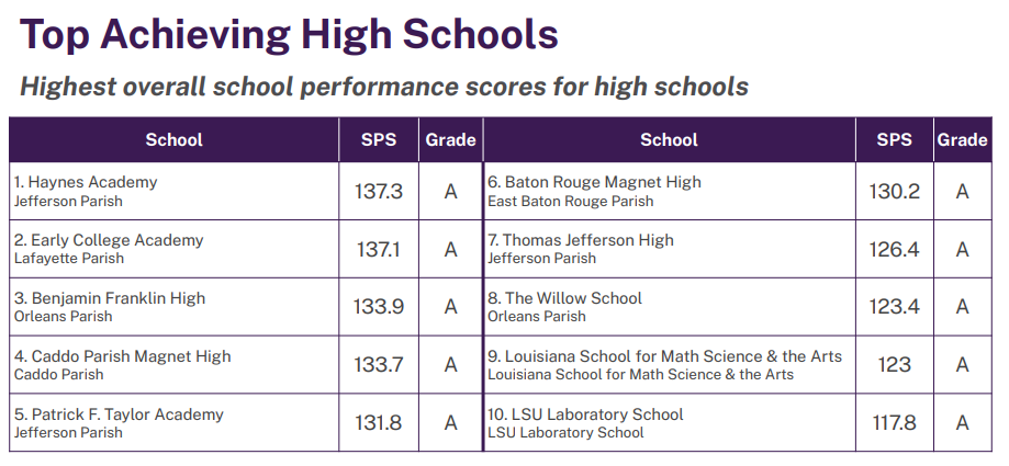 Credit: Louisiana Department of Education (School and District Performance Scores - 2024-2025)